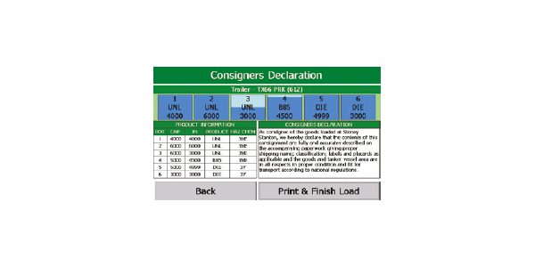 This records the types and quantities of fuel loaded at the start of the journey. In addition to listing this information the loading document will need other information such as date, load number, vehicle registration mark, driver, place of loading, delivery ticket numbers.